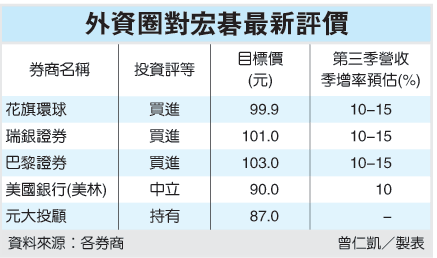 花旗環球估計宏碁8、9月將強勁反彈,整個第三季筆電出貨量約950 萬台,季增率介於10%至15%。維持宏碁投資評等為「買進」,目標價99.9元。