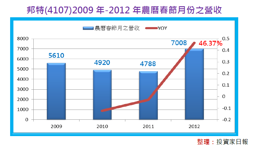 現階段的台股可以說是遍地是黃金,另一方面,還發現許多黃金仍然被默默地埋藏在礦坑的深處等待被挖掘。以邦特(4107)為例,這家主攻高附加價值醫療器材的公司,2012年農曆春節月份的營收,出現了46.37%年增率的好成績。
