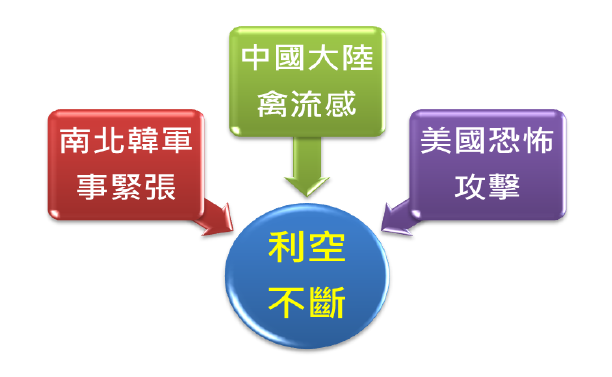 再者,4/15中國公布第一季GDP年增率僅7.7%,在低於市場預期下,拖累當天香港股市應聲大跌316點,跌幅1.43%;同一日,美國獨立戰爭指標城市波士頓,驚傳爆炸案,不但是自911以來美國本土最大的一次恐怖攻擊事件,更造成道瓊工業指數當日重挫265點,跌幅1.79%。