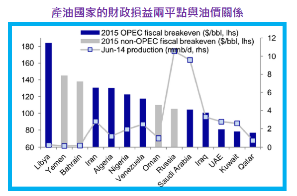 油價的跌跌不休,對全球金融市場將衍生出兩大衝擊,一是產油國家,雖然過去10年透過高油價的收益,累積了龐大的主權基金並且在海外廣泛布局投資,但由於這些國家在財政上的損益兩平點,大都需要國際油價維持在每桶100美元以上,換言之,這波油價快速下跌到40美元以下,一方面已衝擊到這些產油國家的外匯存底快速下降,另一方面為了彌補當前的財政缺口,勢必會引發一波出售海外資產求現的壓力。