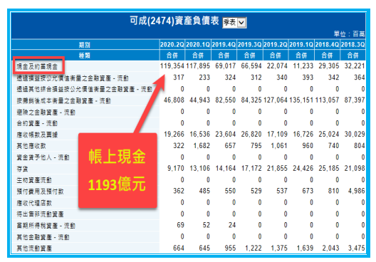 換言之,若現在有人以市價180元的價格把可成(2474)全部買下,光是分潤公司帳上的現金就可拿回206元,其中還不包括公司的其他有形資產,例如廠房、土地、機器設備等。