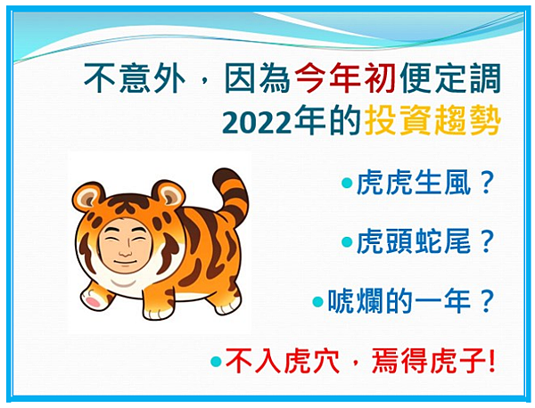 平心而論,2022年台股出現劇烈波動的走勢,長期有在追蹤日報觀點的訂戶,相信一點也不會意外,畢竟今年年初時慶龍就定調,2022年的投資趨勢,既不是虎虎生風,也不是虎頭蛇尾,更不是唬爛的一年,而是:不入虎穴,焉得虎子。